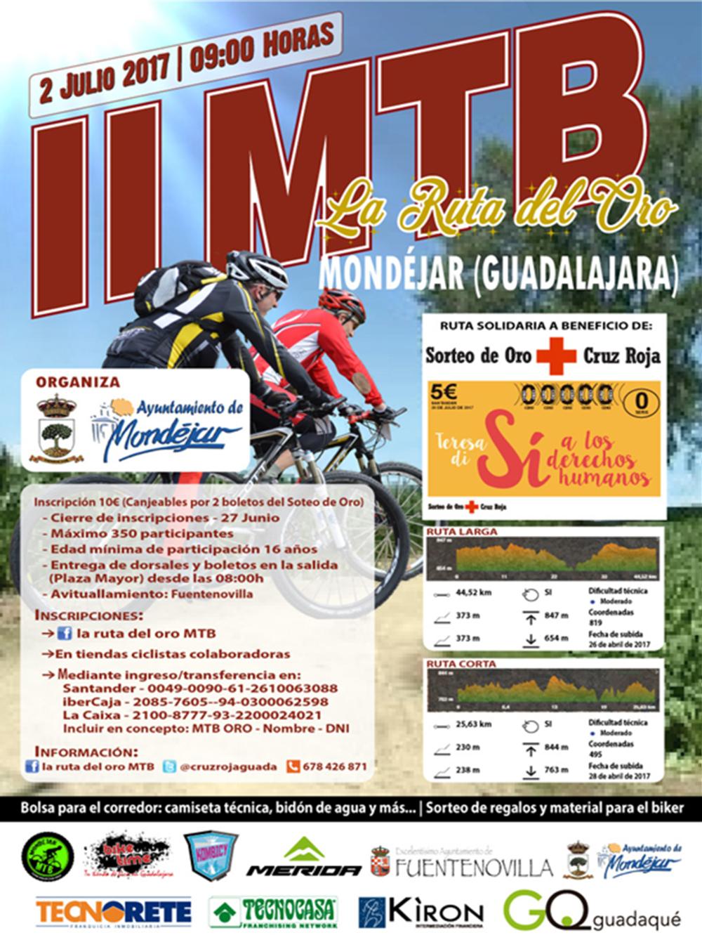 Cruz Roja Española en Guadalajara organiza, por segundo año consecutivo, la II edición de la Ruta del Oro, una ruta de MTB cuyos beneficios irán a parar a diversos proyectos enmarcados en el Sorteo del Oro.