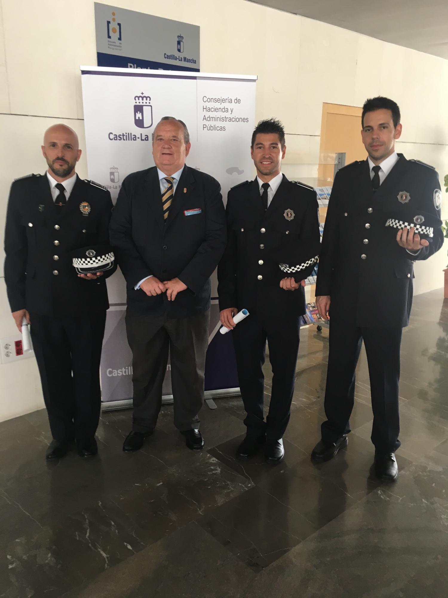 Así mismo, el pasado viernes 14 de Julio el Alcalde también acompañó a los dos nuevos Policias Locales y al Oficial , al acto de recogida de los correspondientes Diplomas de la Escuela de Protección Ciudadana de CLM, cuya entrega tuvo lugar en Toledo , y fue realizada por la Viceconsejera de Hacienda y Administraciones Públicas de La Junta de Castilla La Mancha.