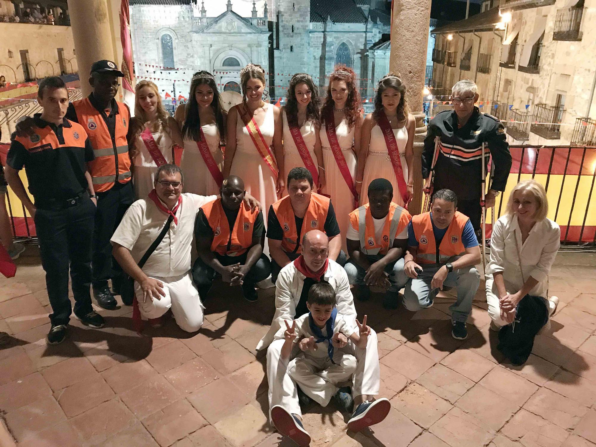 Reinas y damas se encaminaban, vestidas de blanco, hacia la balconada del Ayuntamiento, adonde también se dirigían los peñistas representantes de las dos formaciones que acompañado el pregón: Los Increíbles y El Tropezón. Boris, representante de los primeros, calificó las fiestas de San Roque como “las mejores del planeta”, y se enorgulleció de que Los Increíbles formaran parte de su inicio, junto a la reina y las damas. “Espero que todos viváis una fiestas inolvidables”, dijo, y tuvo el detalle de mencionar a todos los seguntinos que no van a poder disfrutarlas este año, enviándoles también sus mejores deseos, antes de que, acompañado por otra de las integrantes de Los Increíbles, juntos dieran los vivas a San Roque, a la Virgen de la Mayor, a Sigüenza y a las peñas. VER INCREIBLES.