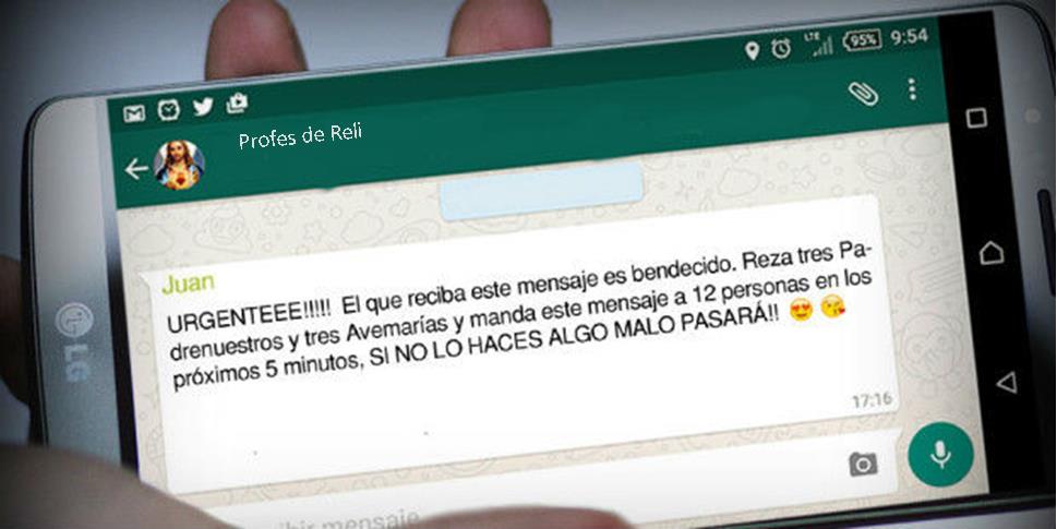 Hoy más que nunca, gracias a internet y a las redes sociales, se ha incrementado la difusión de cadenas de oración que para lograr unos fines determinados amenazan con un castigo a quien no las siga o tratan de imponer algo.