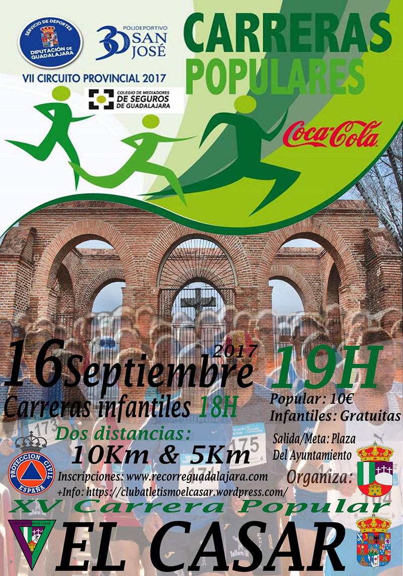 El próximo sábado, 16 de septiembre, a partir de las 19:00 horas se celebrará la XV Carrera Popular El Casar, séptima prueba del VIII Circuito de Diputación Provincial “Recorre Guadalajara”.