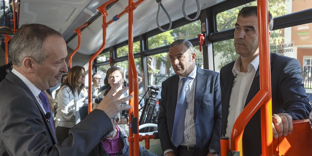 El servicio de transporte urbano de viajeros de Guadalajara sigue mejorando. El alcalde, Antonio Román, y el director general de la unidad zonal centro de ALSA -concesionaria del servicio- César Llana, han presentado hoy el nuevo vehículo que se va a incorporar a la flota de Guadalajara.