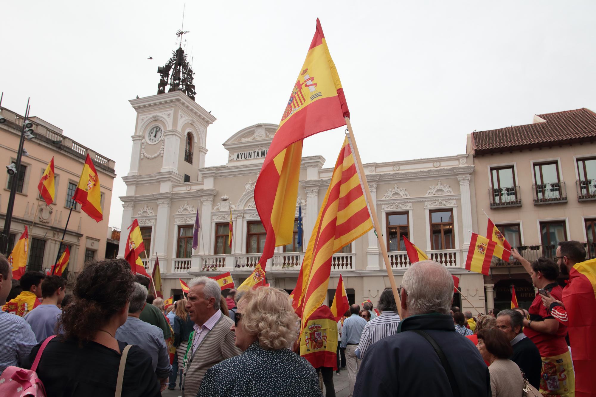 Cientos de personas se han concentrado este sábado a las doce de la mañana frente al Ayuntamiento de Guadalajara, para defender la unidad de España y contra el referéndum ilegal catalán. Llevando en su mayoría la bandera nacional española, los manifestantes han empezado a llegar en torno a las 11,30 horas.