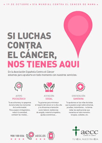 Desde la Asociación Española contra el Cáncer de Guadalajara y con motivo de la celebración del Día contra el Cáncer de Mama (19 de octubre), se ha diseñado una Campaña con diferentes actuaciones, tales como: