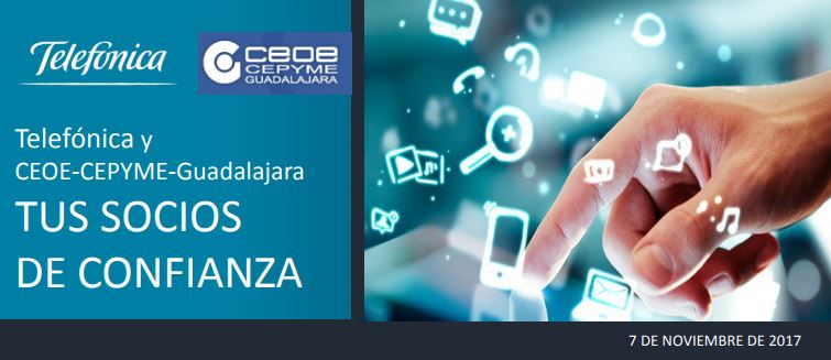 CEOE-CEPYME Guadalajara, en colaboración con Telefónica, ha organizado, para el próximo martes 7 de noviembre de 9:30 a 14:00 horas en el centro de Nuevas Empresas de Guadalajara, una jornada informativa basada en el cloud y seguridad.