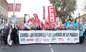 Bajo el lema 'Contra los recortes y en defensa de lo público' los manifestantes han recorrido las calles de la capital, donde las organizaciones sindicales han lanzado un mensaje de unidad y han advertido del riesgo que corren los servicios públicos "a consecuencia de la política de recortes de la Junta".