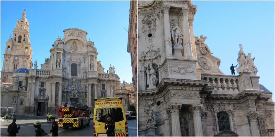 El hombre que amenazaba con lanzarse al vacío desde la Catedral de Murcia accede a bajar