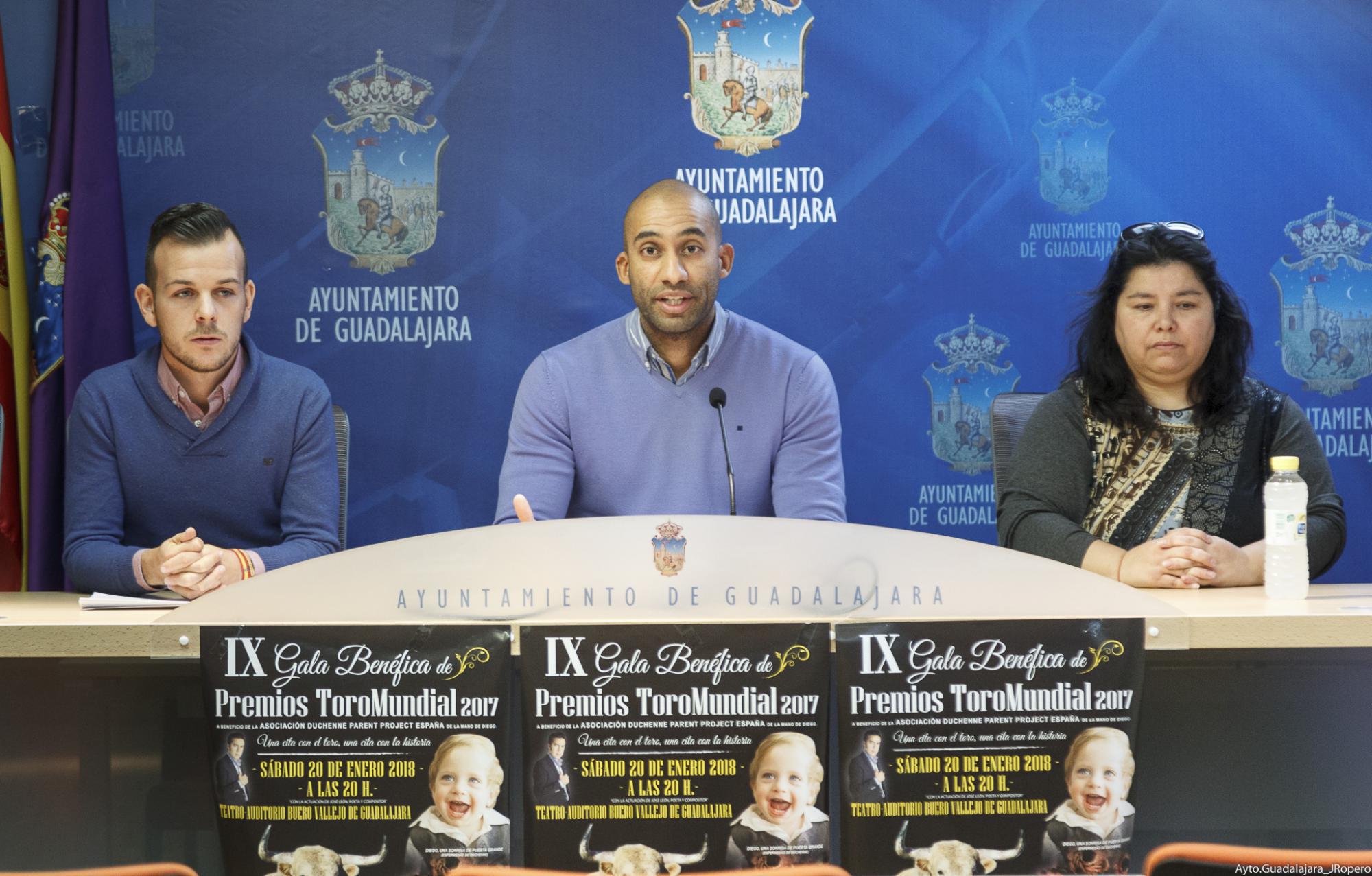 La Gala Benéfica de Premios Toromundial celebrará su novena edición el próximo 20 de enero a las 20 horas en el Teatro Auditorio Buero Vallejo. Hoy ha sido presentada por el teniente de alcalde, Armengol Engonga, Borja Blanco, presidente de la Asociación Cultural Toromundial y Laura Pascual, la madre de Diego, un niño de dieciséis meses que padece la enfermedad de Duchenne, dado que este año lo recaudado será en beneficio de la Asociación Duchenne Parent Project España.
