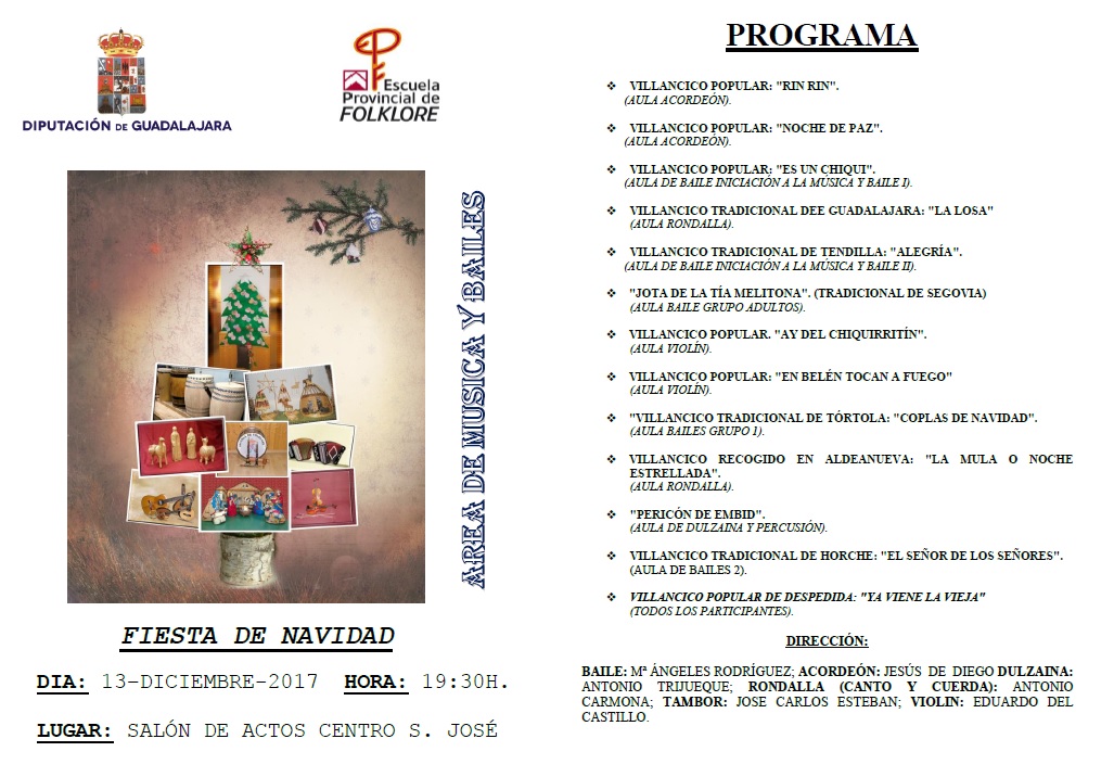 El próximo miércoles, 13 de diciembre, a partir de las 19:30 horas en el Salón de Actos del Centro San José la Escuela de Folklore de la Diputación de Guadalajara celebrará su tradicional "Fiesta de Navidad".