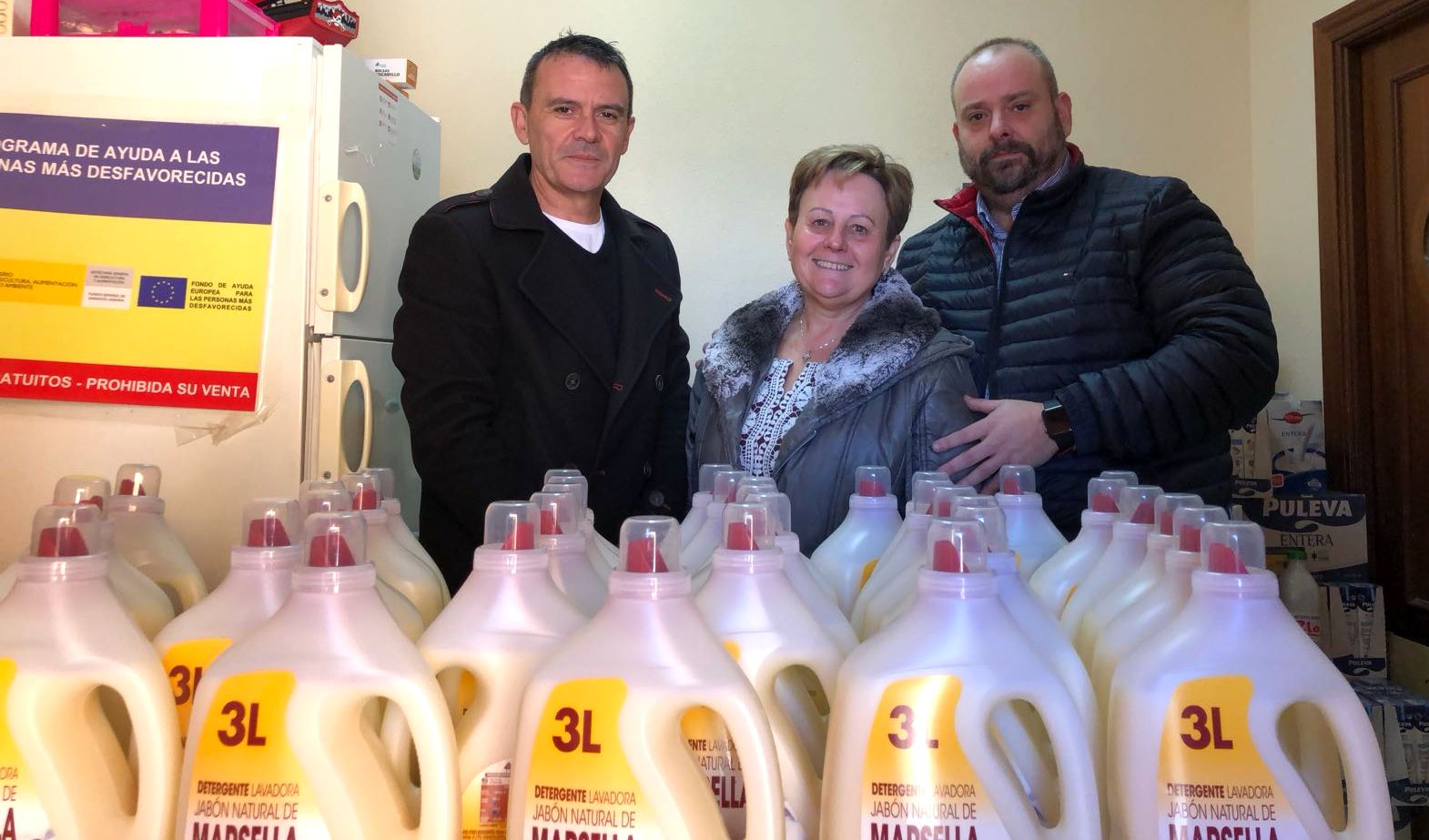 El presidente de la Junta Local del Partido Popular de Alovera y su secretario general, Juan Carlos Martín y José Luis Torres, respectivamente, han sido los encargados de entregar a la responsable de Cáritas de Alovera, Concha Morales, todos los productos y artículos de limpieza e higiene recogidos a través de la campaña ‘Populares Solidarios’, puesta en marcha en la provincia por Nuevas Generaciones (NNGG) hace ya dos décadas como una iniciativa de apoyo a las familias que disponen de menos recursos.