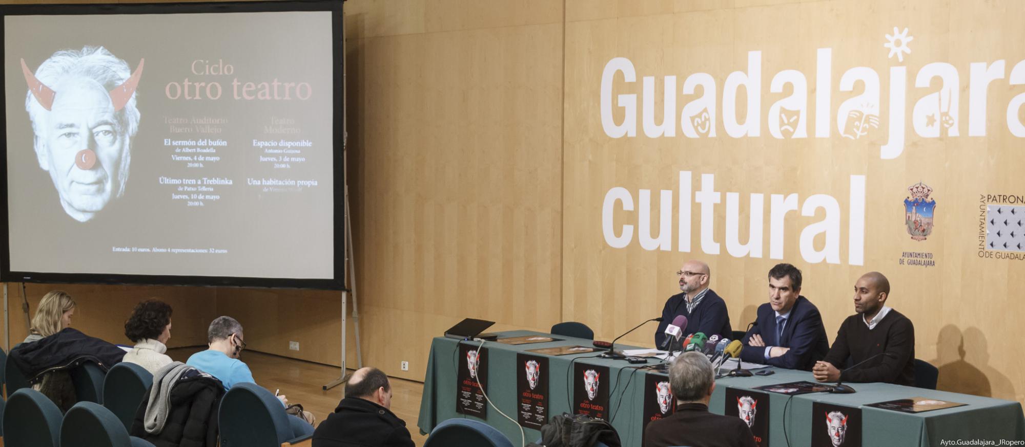 El alcalde de Guadalajara, Antonio Román, ha presentado un nuevo ciclo cultural, promovido por el Patronato Municipal de Cultura. Denominado “Otro teatro”, “enriquece la oferta cultural del Ayuntamiento de Guadalajara y persigue dar respuesta a las inquietudes de los amantes del teatro, pero de un tipo menos convencional”, tal y como ha manifestado.