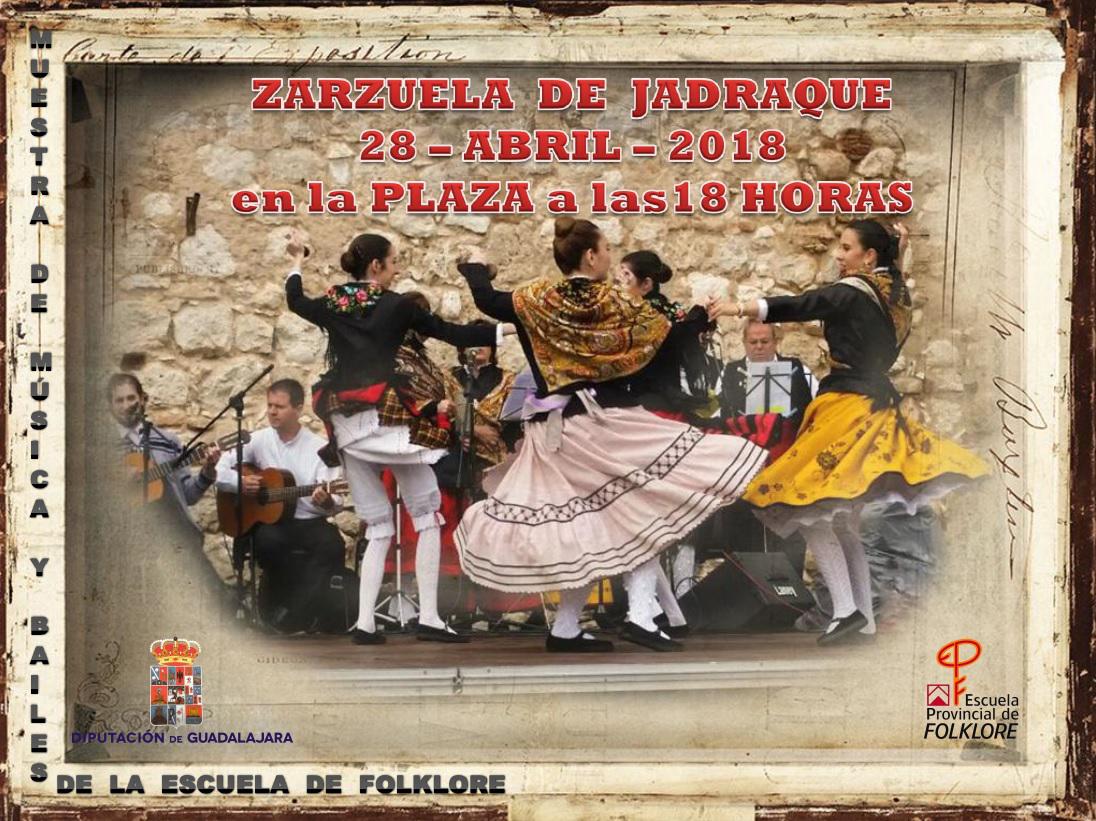 La Escuela de Folklore de la Diputación de Guadalajara ofrecerá mañana, sábado 28 de abril, a partir de las 18:00 horas en la plaza del Ayuntamiento de Zarzuela de Jadraque una "Muestra de música y bailes tradicionales".