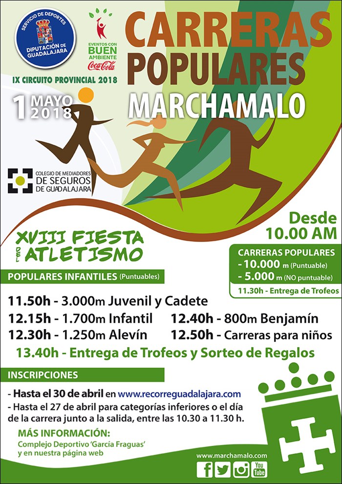 El próximo martes, 1 de mayo, a partir de las 10 horas se celebrará la XVIII Fiesta del Atletismo de Marchamalo, segunda prueba del VIII Circuito de Carreras Populares Diputación de Guadalajara.