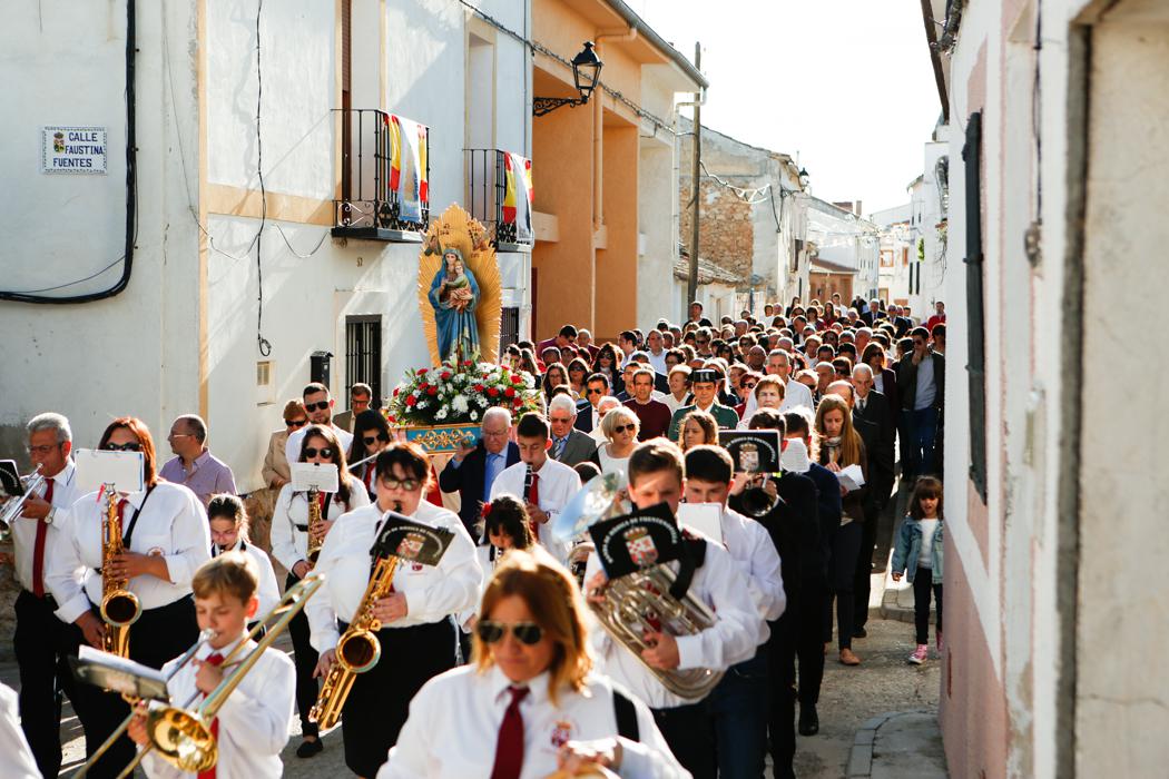 En horario de mañana, el párroco local, Antonio Gaona, oficiaba la misa en honor a la patrona de Fuentenovilla, a la que la villa alcarreña venera con fervor. Junto a la hornacina en al que descansaba su imagen, decenas de ramos de flores así lo volvían a demostrar este año. Después de la ceremonia religiosa, la Banda de Música, dirigida por Ricardo Piña, interpretó un baile vermú en la Plaza Mayor.