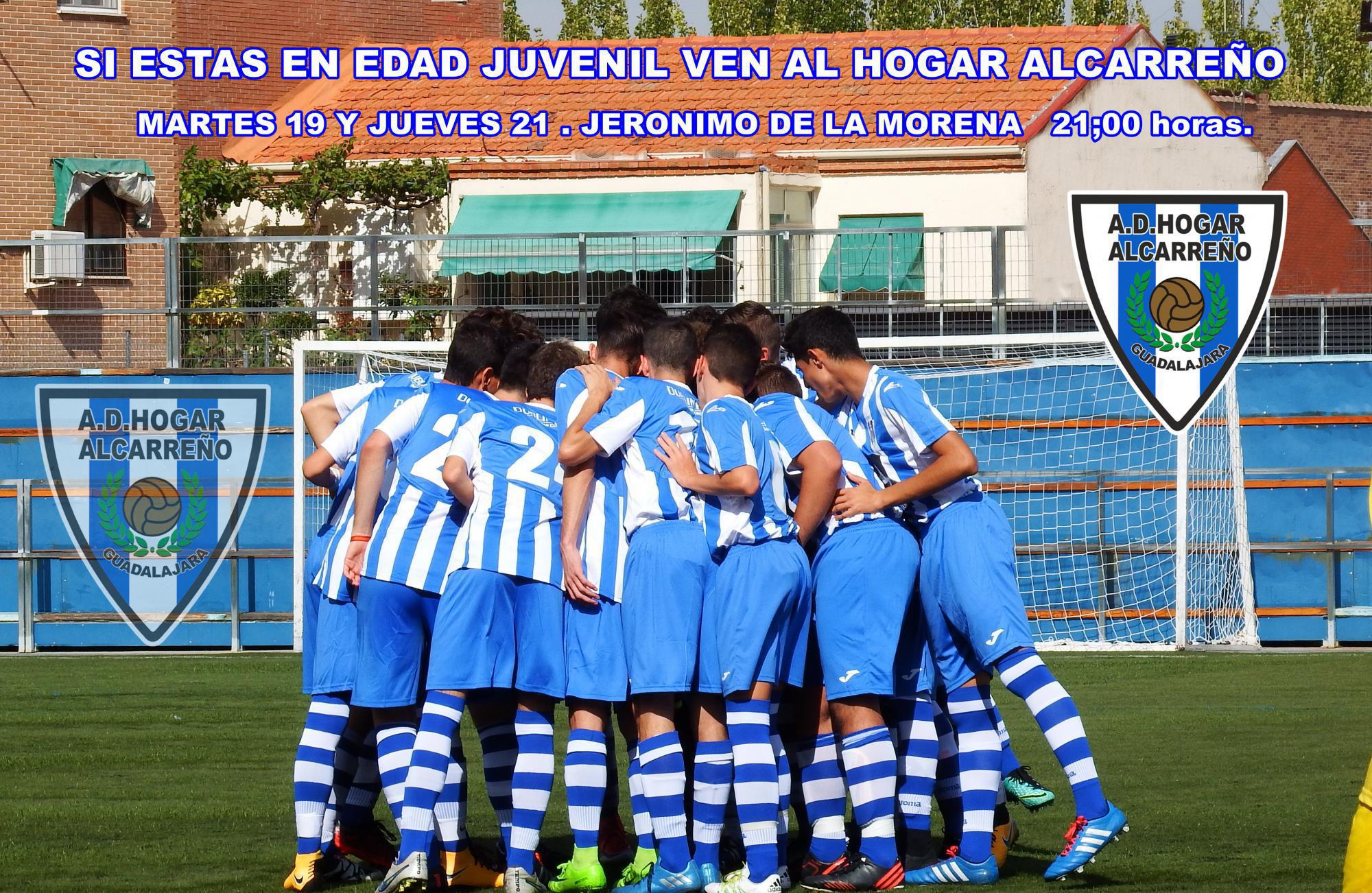 La A.D. Hogar Alcarreño, en su apuesta ilusionante por las categorías de base y la cantera alcarreña, inicia su nuevo proyecto con una Jornada de Captación de jugadores para su categoría juvenil, de cara a la temporada 2018/19, próxima a comenzar.