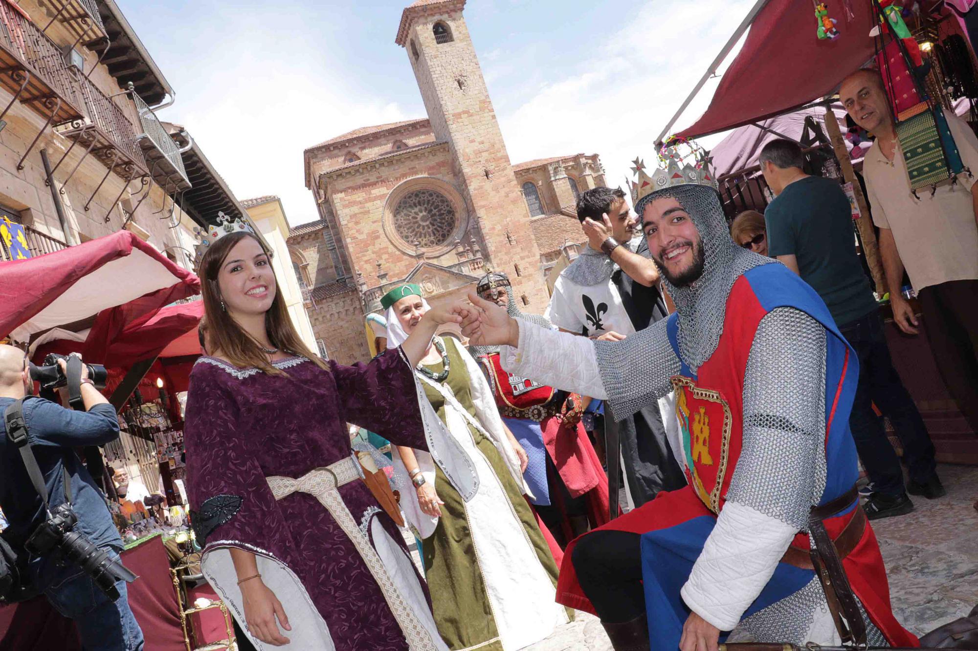Más de 130 puestos se abrían al público en la mañana del sábado, confiriéndole a la ciudad, también con sus mercaderías, los aires de otros tiempos, legendarios, que se buscan como atractivo turístico desde hace casi dos décadas por estas fechas. Viandas de todas clases, bisutería, orfebrería, libros de historia, artesanía local, camisetas hechas a mano, piedras preciosas o jabones, se podían encontrar en la ciudad. Desde primera hora, humos suculentos, procedentes de las parrillas, se mezclaban con el aroma de jabones y lavandas, en la cuesta de la calle Mayor. “Ya solo por el mercado, merece la pena la visita a las Jornadas Medievales, pero es que además, hay muchas propuestas que reivindican nuestra historia y nuestros monumentos”, valora Oscar Hernando, concejal de Turismo de la ciudad.