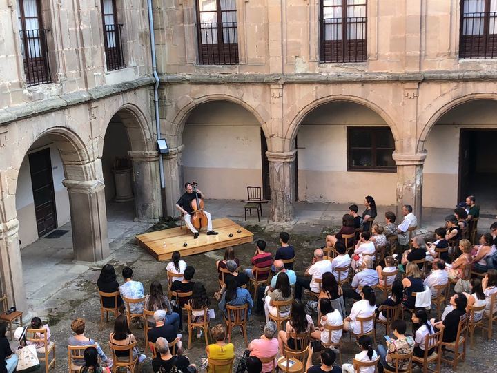 El primero de ellos ha tenido lugar ya hoy, en el Claustro del Convento de las Doroteas, cuartel general de CellosMagics. Lo presentaba Sonsoles Arcones, concejala de Cultura del Ayuntamiento de Sigüenza, que dio la bienvenida a la iniciativa e invitó a disfrutar a seguntinos y visitantes de la magia de la música melancólica de este instrumento en la ciudad”. Arcones destaca que la combinación entre la fuerza y el entusiasmo de los estudiantes, y la sabiduría de sus profesores “nos va a deparar conciertos memorables, como ya sucediera en los dos años anteriores”.