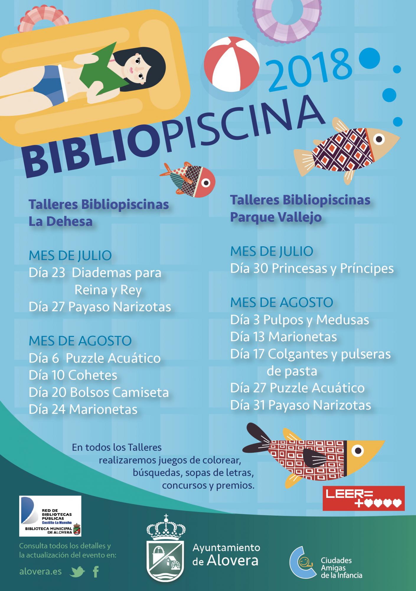 Todas las semanas se van a realizar talleres en ambas piscinas. El horario de la Bibliopiscina para es por las tardes de 17,00 a 19,45 de lunes a viernes.