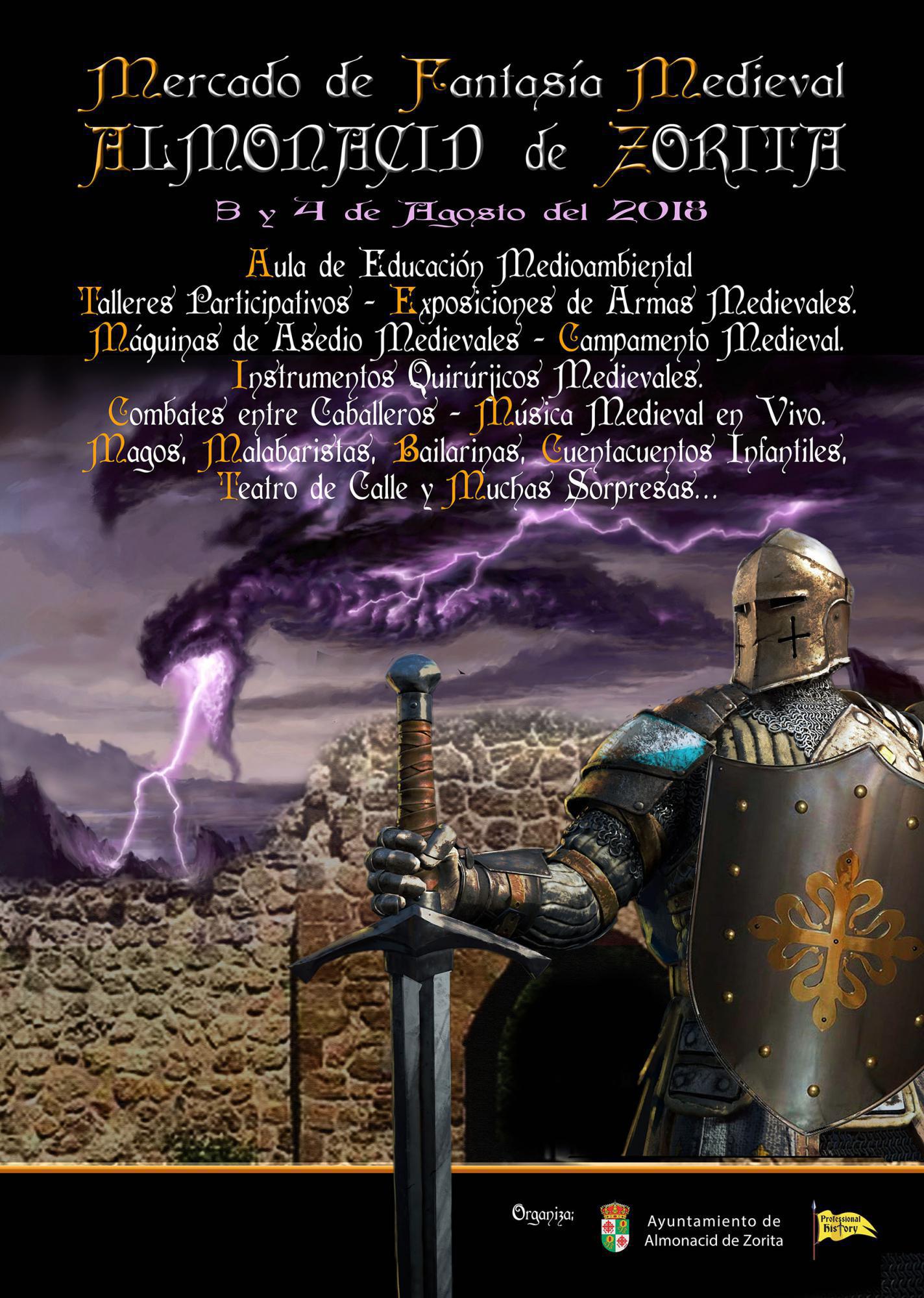 Quedarán desplegados entonces más de cincuenta puestos de artesanos, con todo tipo de mercaderías. La Gaita, el tambor y la zanfoña darán pie, ya en el desfile, al viaje en el tiempo de Almonacid. Magia, y malabares con fuego, con el espectáculo de la 'Máscara de la Muerte Roja', le darán continuidad a una tarde que culminará con un concierto de cuatro jóvenes con talento y sus instrumentos medievales de fabricación propia. Son Edena Ruh. Su nombre proviene “de un grupo de artistas itinerantes que animaban los mercados de los pueblos subidos en sus carromatos”.