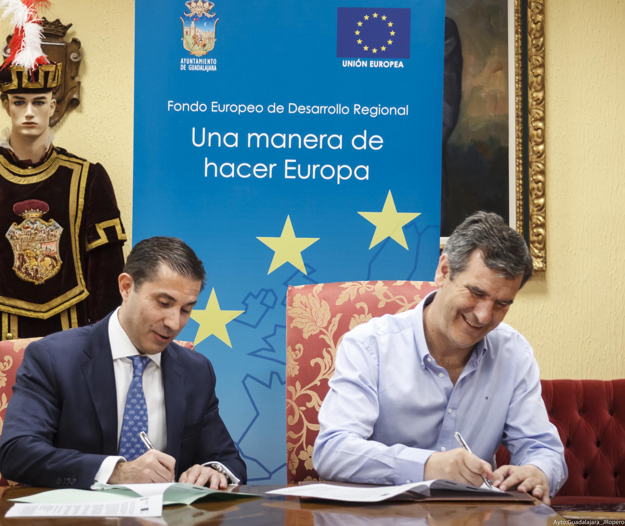 El Ayuntamiento de Guadalajara y la empresa REHACSA han suscrito el contrato para la ejecución del proyecto de recuperación, rehabilitación y reforma del actual edificio del Mercado de Abastos, que será cofinanciado con Fondos Europeos de Desarrollo Regional. Los trabajos comenzarán próximamente y el plazo de ejecución será de siete meses.