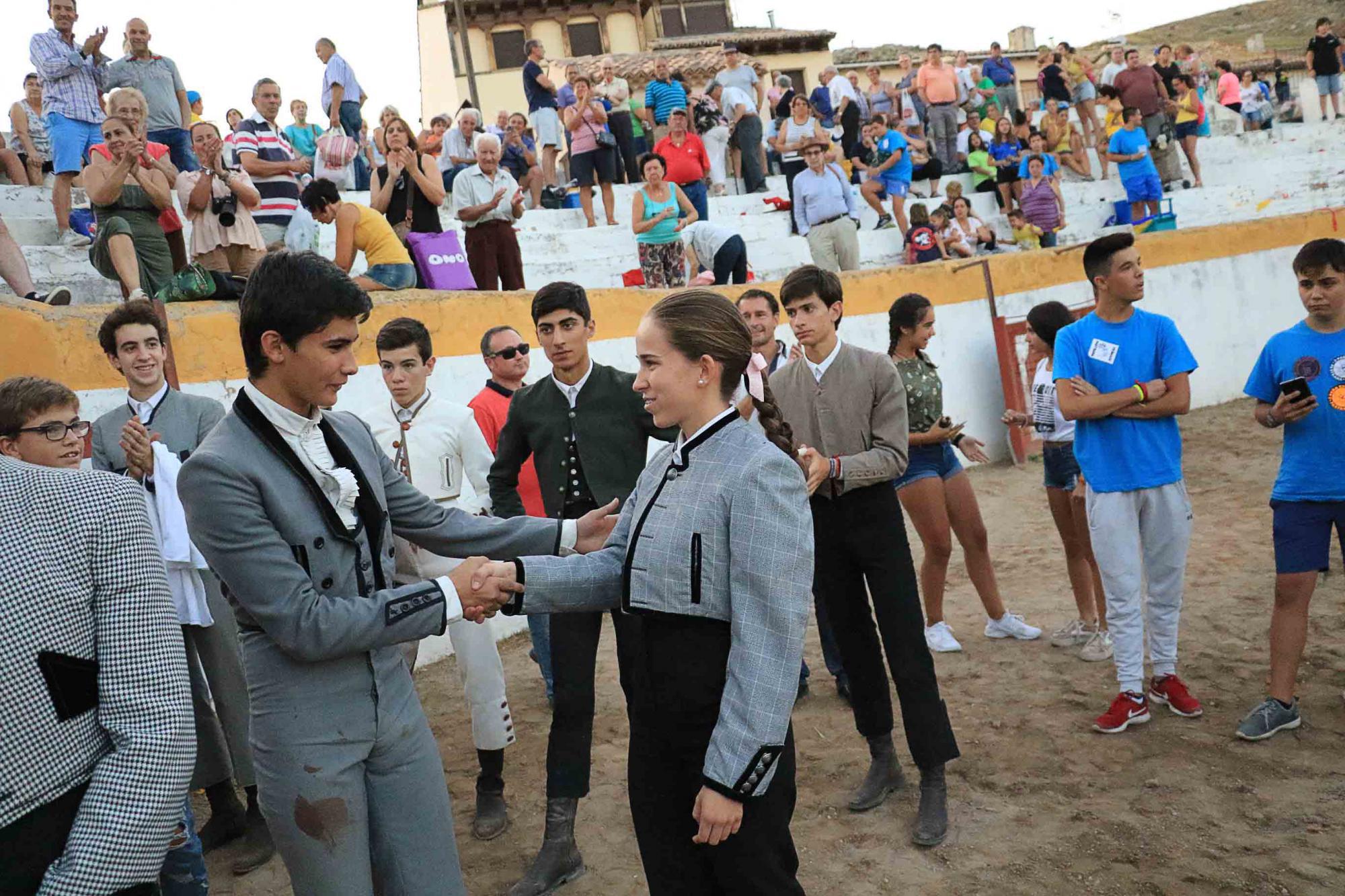 En la tarde de ayer, a partir de las 19 horas, cuatro jóvenes espadas, que tienen toda la ilusión del mundo por ser toreros, derrocharon arrojo y buenas maneras en la plaza de toros más antigua de la provincia de Guadalajara, que es la de Pastrana. Fue inaugurada en 1885. Lo hicieron en el V Certamen de Tauromaquia que la villa ducal dedica, ya para siempre, a la memoria del torero Iván Fandiño, tristemente fallecido el año pasado. Se celebró en formato de clase práctica, organizada por la Escuela Taurina de Guadalajara. Se lidiaron cuatro becerros de la ganadería de Victoriano del Río. Y como cada año, Pastrana la organiza para apoyar a chavales, principalmente de la tierra, que se inician en el mundo del toreo.