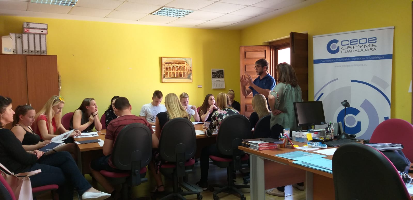 La delegación que CEOE-CEPYME Guadalajara tiene en la localidad de Sigüenza ha sido la anfitriona para un grupo de jóvenes estudiantes de Praga. Concretamente se trata de un grupo de alumnos del instituto Obchodní Akademie Heroldovy Sady de Praga que están realizando estos días un curso intensivo de español en la Ciudad del Doncel, gracias al Segontiae International Studies, especializada en la enseñanza de español para extranjeros.