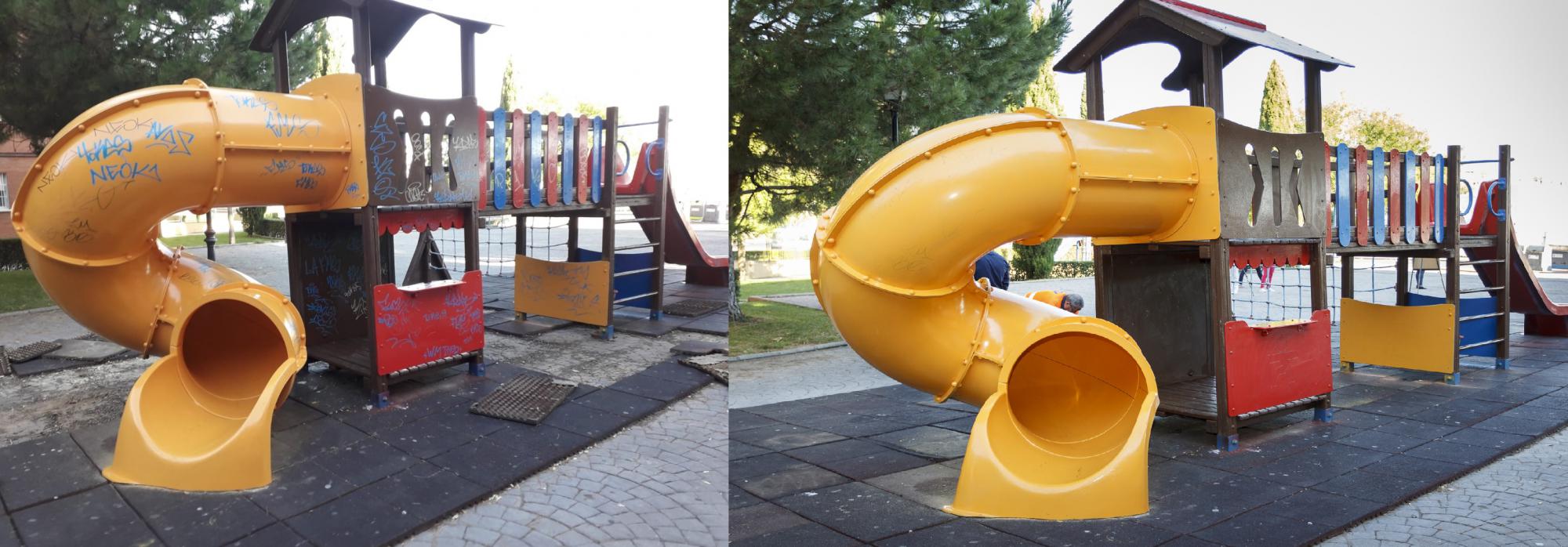Hoy, el vicealcalde de Guadalajara, Jaime Carnicero, ha denunciado esta situación en uno de los parques afectados. Situado en la calle de La Barca (Las Lomas), el juego infantil ha sido objeto de pintadas y destrozos en varias ocasiones. El Ayuntamiento de Guadalajara lo reparaba el pasado 30 de septiembre, pero el arreglo duraba escasos días. Los vándalos arrancaron el caucho del suelo y que sirve de protección ante la caída de los niños y llenaban de graffitis el juego infantil. Hoy, la contrata de mantenimiento de parques y jardines del Ayuntamiento de Guadalajara, ya ha procedido, de nuevo, a su reparación, lo que ha conllevado un coste de 1.500 euros.