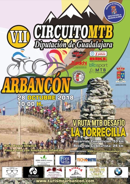 El próximo domingo, 28 de octubre, a partir de las 10:00 horas se celebrará en Arbancón la V Ruta MTB Desafío de La Torrecila, última prueba del VII Circuito MTB Diputación de Guadalajara.