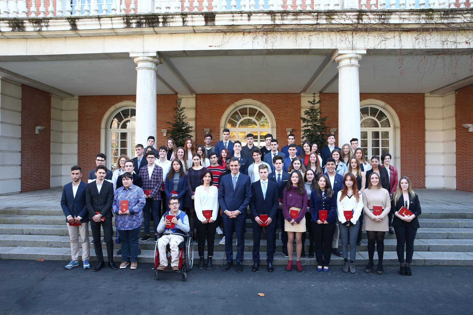 El presidente del Gobierno, Pedro Sánchez, ha destacado durante su intervención las capacidades y valores de estos jóvenes con quienes ha querido compartir algunas reflexiones en torno a la Carta Magna.