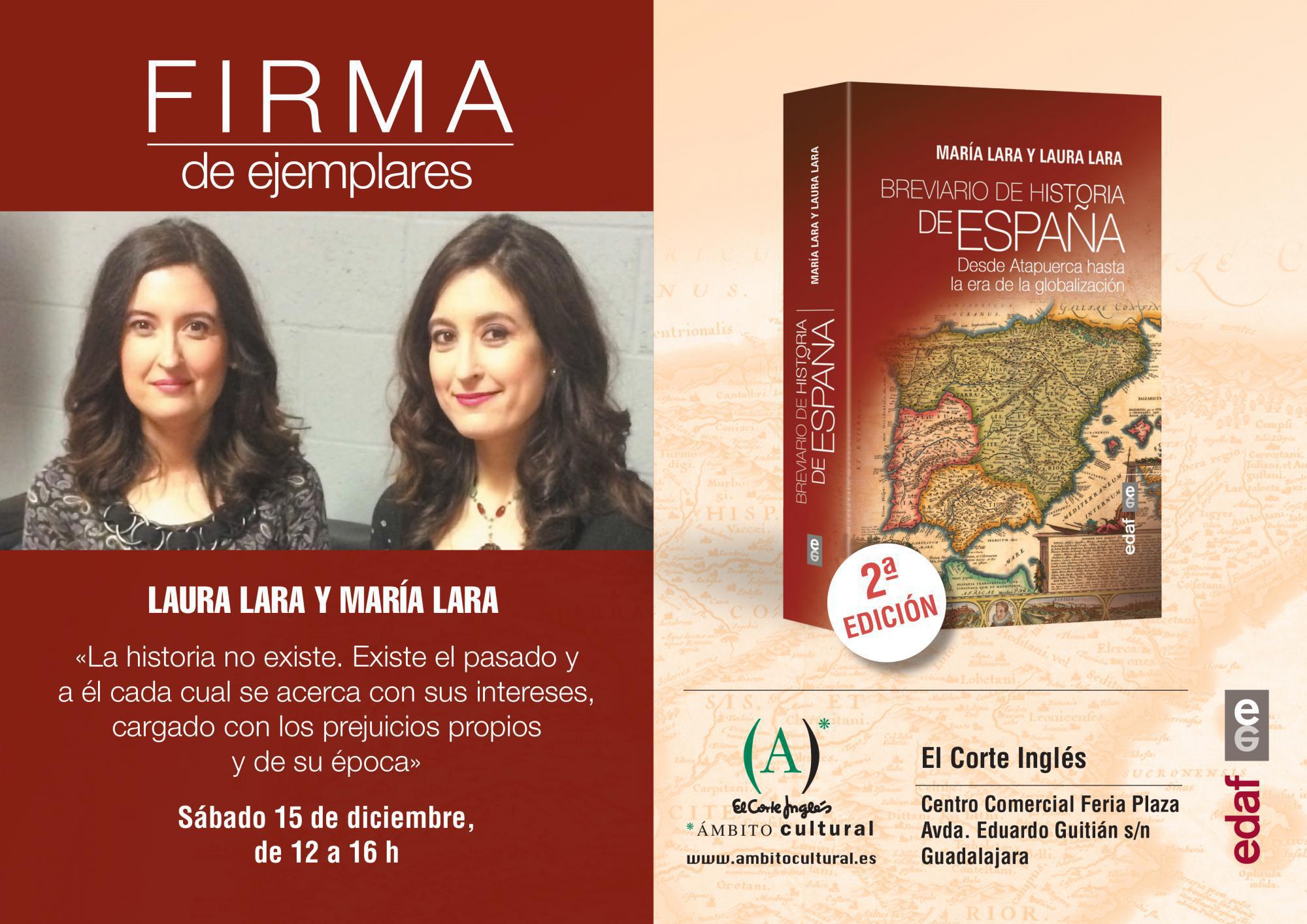 Las hermanas alcarreñas María Lara y Laura Lara presentan su nuevo libro "Breviario de Historia de España" el próximo sábado 15 de diciembre de 12 a 16 horas en El Corte Ingés de Guadalajara.