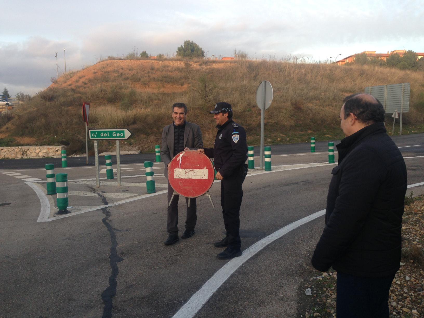 El alcalde de Guadalajara, Antonio Román, ha procedido esta tarde, acompañado del vicealcalde, Jaime Carnicero, a la apertura de la calle del GEO, paralela a la A2 y que pasa por delante del cuartel del Grupo de Operaciones Especiales.
