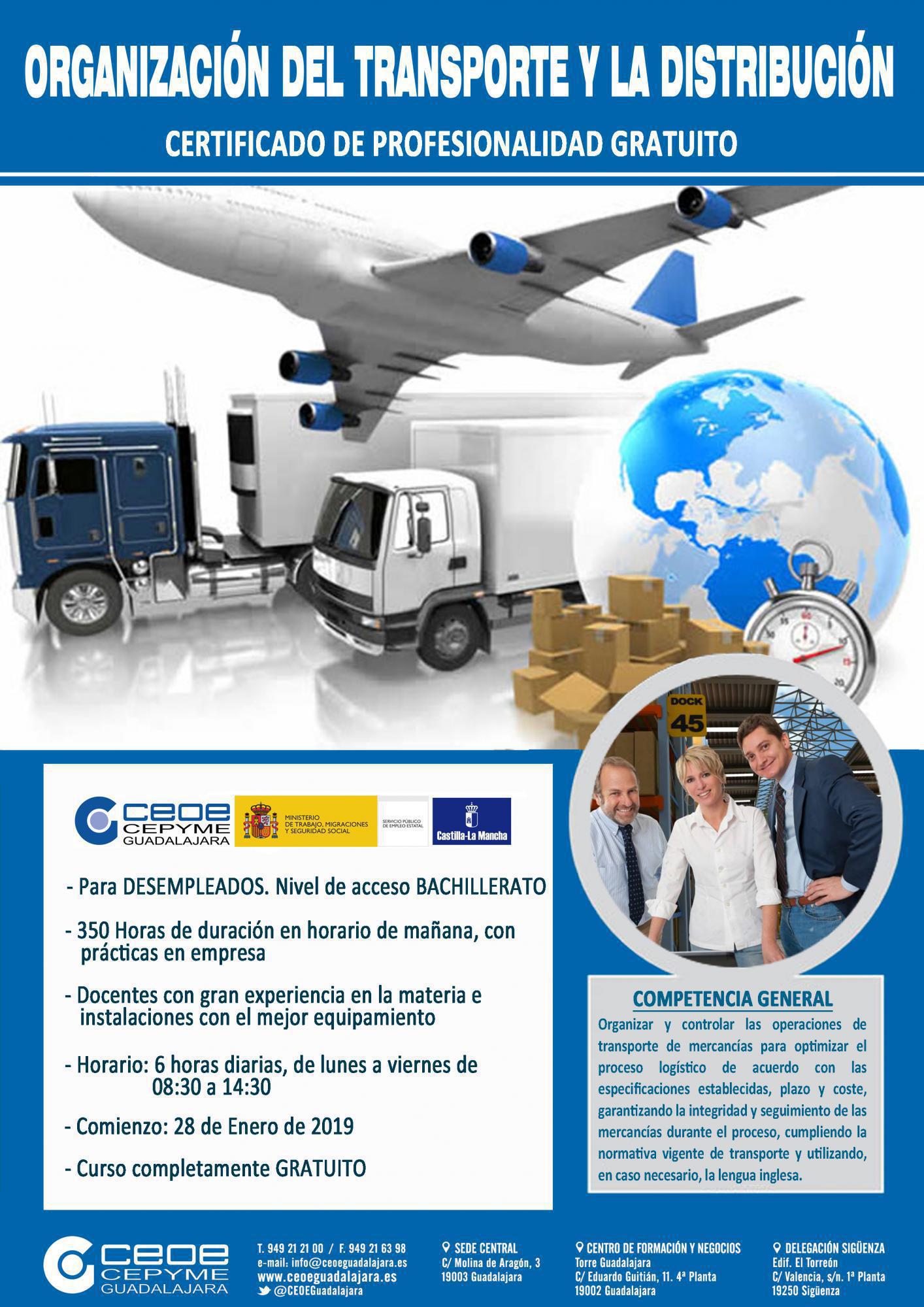 El departamento de Formación de CEOE-CEPYME Guadalajara, informa de las últimas plazas para el curso de “organización del transporte y la distribución”, dirigido a desempleados y que dará comienzo a finales del mes de enero y por el cual, los asistentes, obtendrán el Certificado de Profesionalidad.