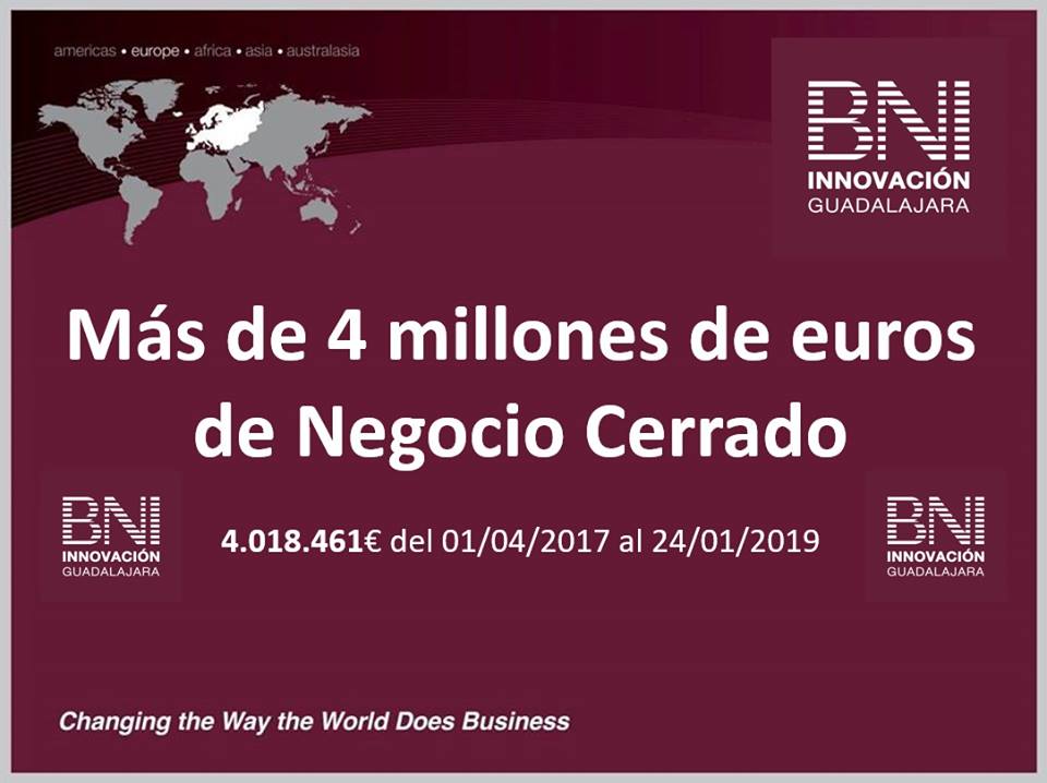 BNI Innovación de Guadalajara alcanza los cuatro millones de euros de Negocio Cerrado