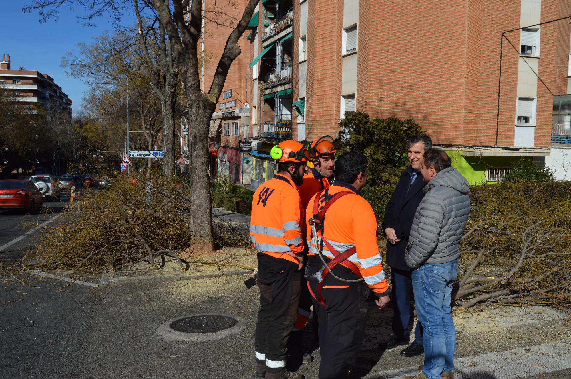 El alcalde, Antonio Román, visitó ayer la zona en la que el equipo de poda estaba realizando sus labores