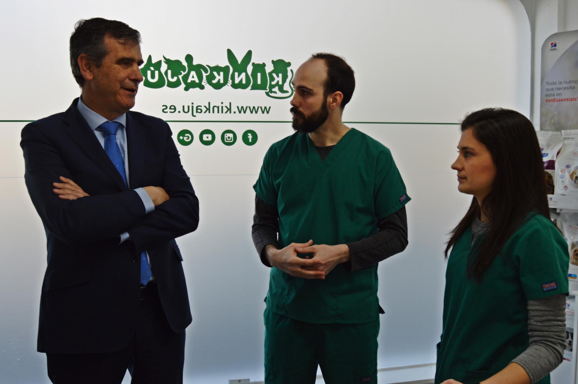 Antonio Román, alcalde de Guadalajara, ha visitado junto a la concejala de Empleo, Isabel Nogueroles, la clínica veterninaria “Kinkaju”, cuyo propietario, Gerardo Sierra, ha sido uno de los beneficiarios de las ayudas que ofrece el Ayuntamiento para el fomento del empleo local. Concretamente, se acogió a la línea de apoyo a los emprendedores, a través de la cual el consistorio destina ayudas para el pago de salarios y cotizaciones, cuotas de colegios profesionales y mutualidades, y gastos corrientes y de inversión.