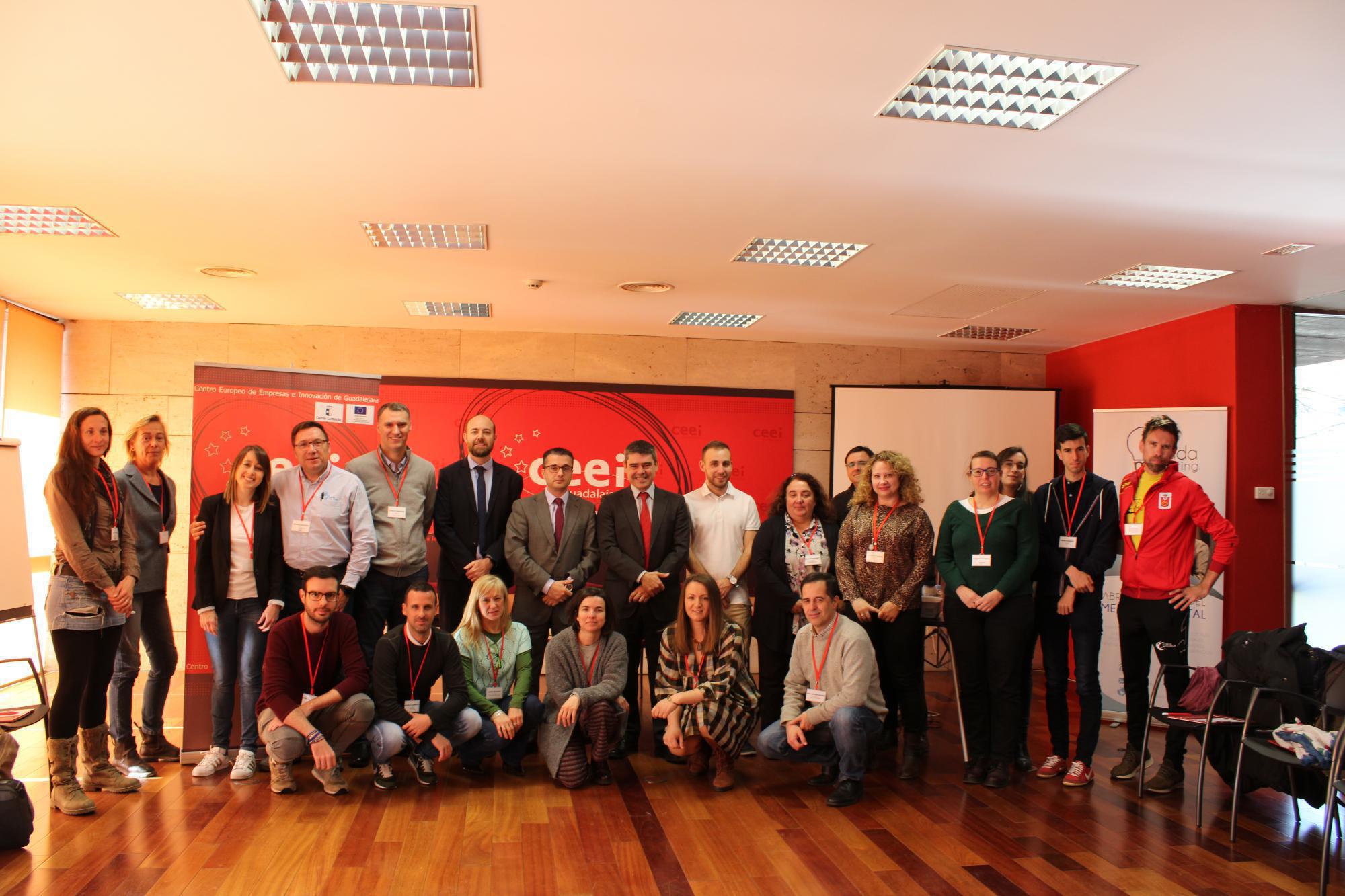 El programa de emprendimiento colaborativo del la Fundación Centro Europeo de Empresas e Innovación de Guadalajara (CEEI Guadalajara), ha dado comienzo con su primera jornada que también ha servido de inauguración, en la cual han estado presentes Javier Arriola, director del CEEI alcarreño y Santiago Baeza, director provincial de Economía, Empresas y Empleo de la Junta de Comunidades de Castilla-La Mancha, Enrique Aranda, director técnico del CEEI alcarreño y Sergio Berbería, gerente de GuadaMarketing, empresa colaboradora del evento, que cuenta con la cofinanciación de la Junta de Comunidades de Castilla-La Mancha y el Fondo Social Europeo.