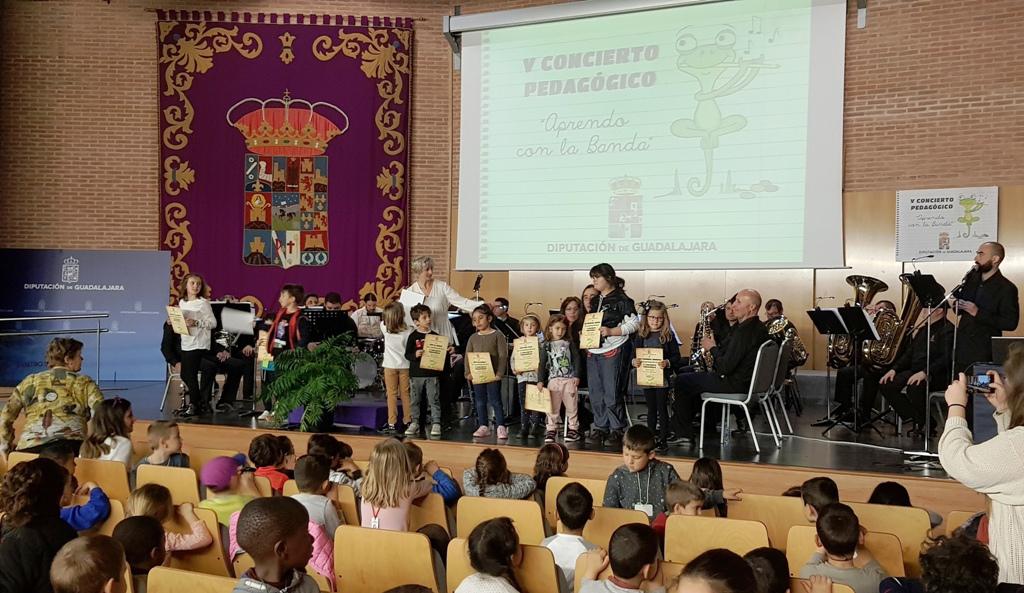 Cerca un millar de escolares de la capital y la provincia de los tres ciclos de enseñanza han participado en los V Conciertos "Aprendo con la Banda" ofrecidos por la Banda de Música con la colaboración de la Escuela de Folklore de la Diputación de Guadalajara.
