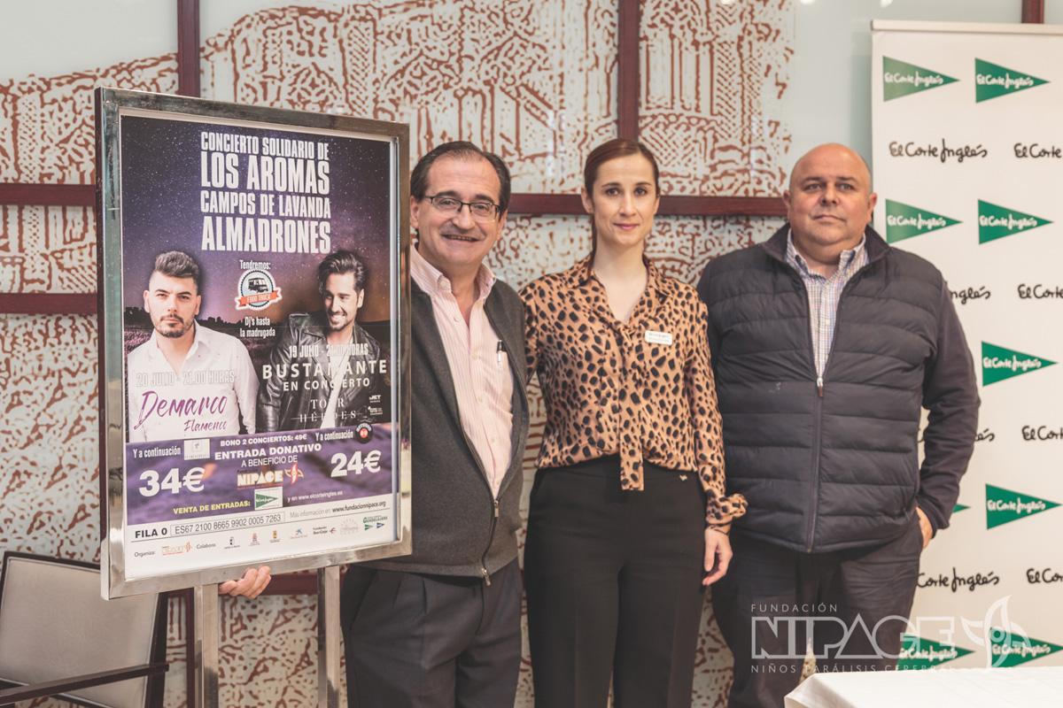 El presidente de la Fundación Nipace, Ramón Rebollo, ha sido el encargado de presentar hoy esta iniciativa solidaria acompañado de la directora de El Corte Inglés de Guadalajara, Carolina Salvatierra, y Juan JoséDe Lope, propietario de Alcarria Flora y de la plantación de lavandadonde se van a celebrar los conciertos, ambos, colaboradores en dicha iniciativa.