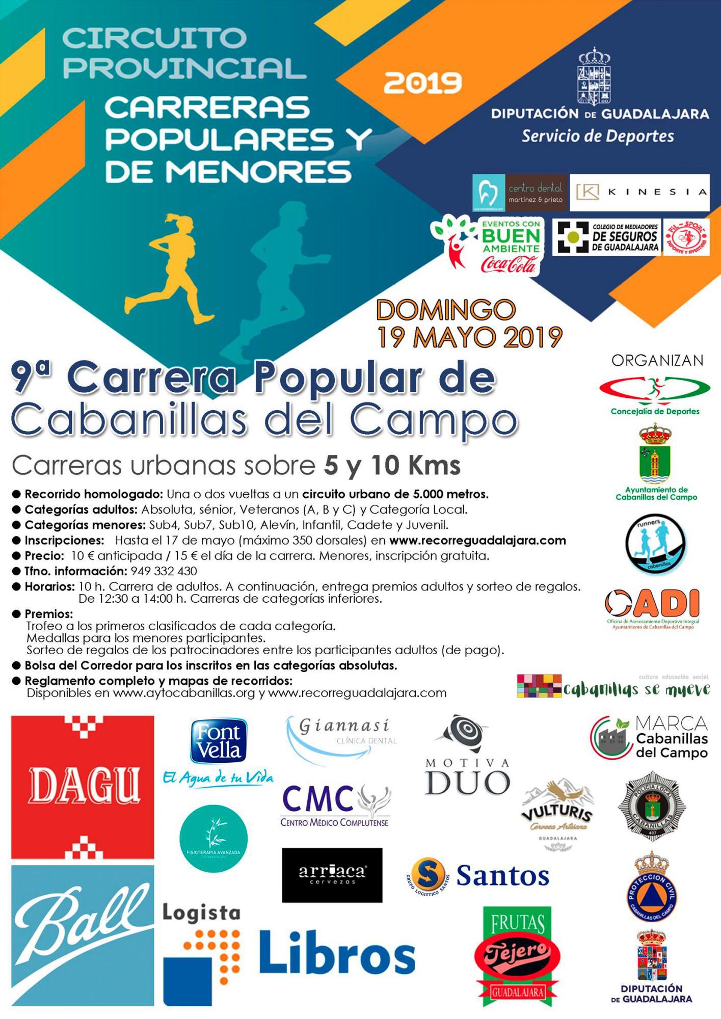 El próximo domingo, 19 de mayo, a partir de las 10:00 horas se celebrará la IX Carrera Popular de Cabanillas del Campo, segunda prueba del VIII Circuito de Carreras Populares Diputación de Guadalajara.
