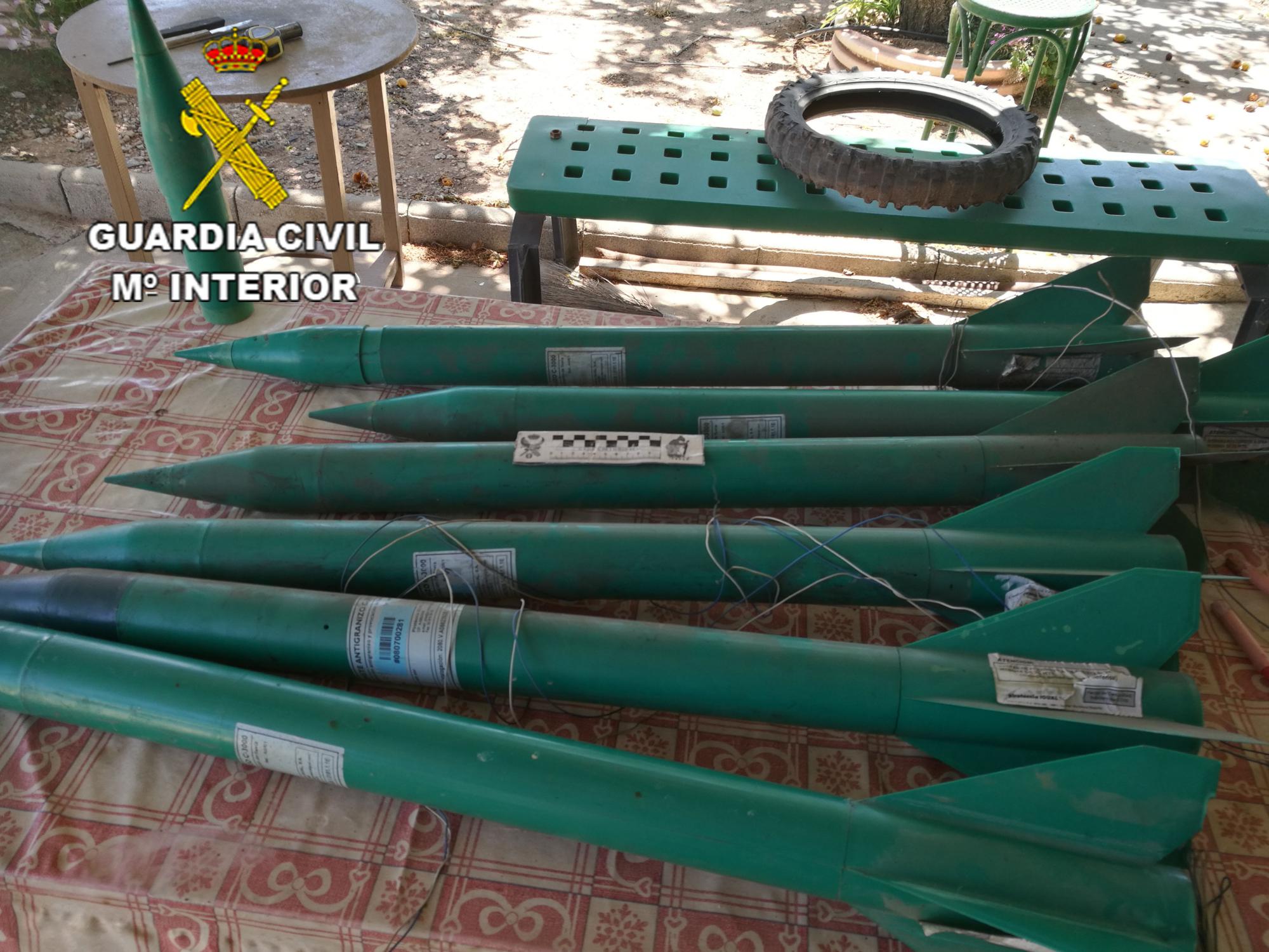 La Guardia Civil de Ciudad Real ha destruido siete cohetes antigranizo que fueron localizados en una finca del paraje “El Campillo” del término municipal de Daimiel, en Ciudad Real.