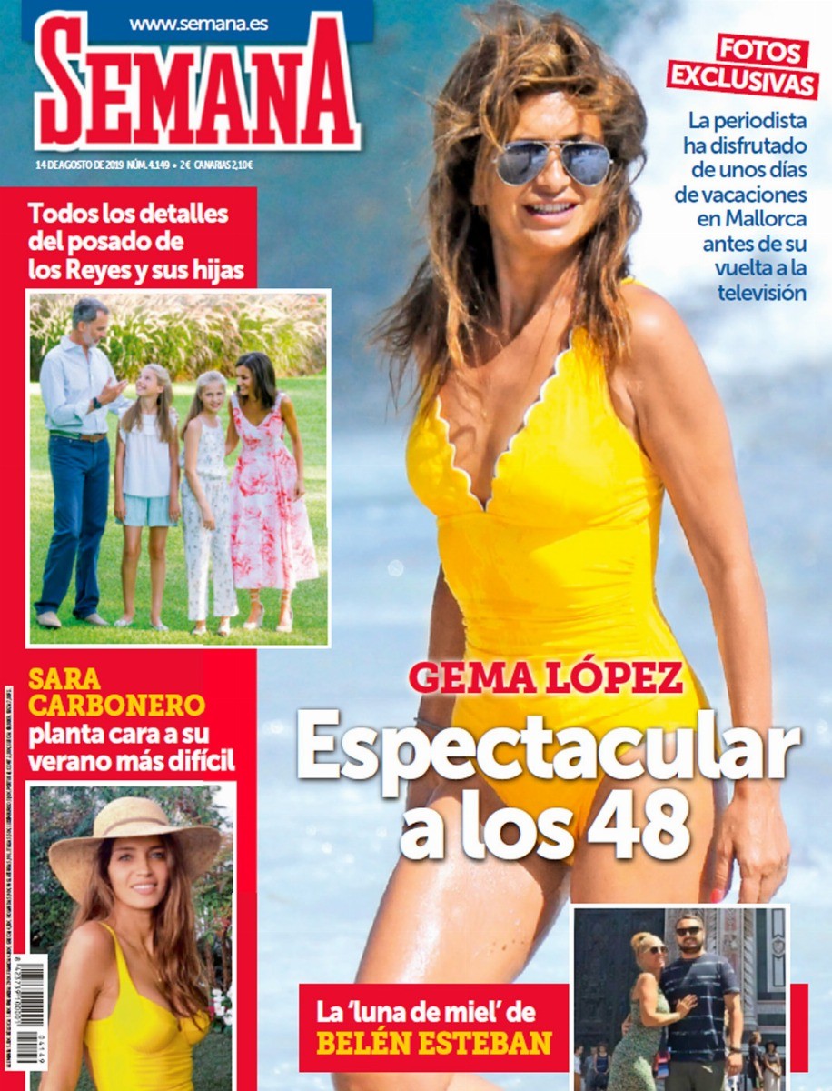 Gema López es la gran protagonista de la portada de Semana. La revista ofrece fotos exclusivas que muestran su cuerpazo a los 48 años. La periodista ha disfrutado de unos días de vacaciones en Mallorca antes de su vuelta a la televisión.