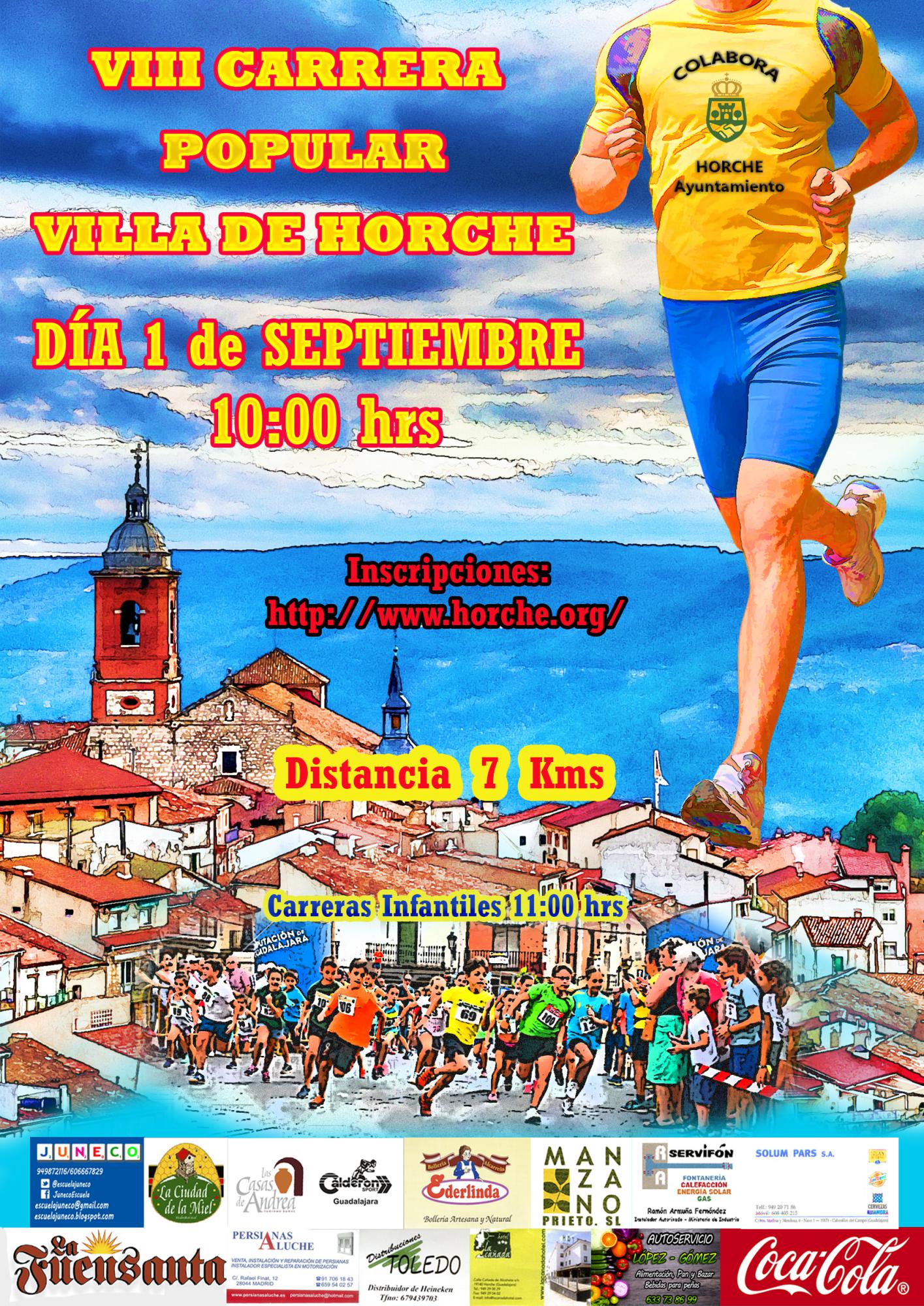 A las 10 horas de la mañana del domingo 1 de septiembre, arrancará de la Plaza Mayor de Horche la VIIIª edición de la carrera Popular “Villa de Horche” que recorrerá 7.100 metros por el casco urbano del pueblo alcarreño y sus inmediaciones, para regresar al punto de partida. A partir de las 11 horas, aproximadamente, se irán celebrando las diferentes carreras infantiles.