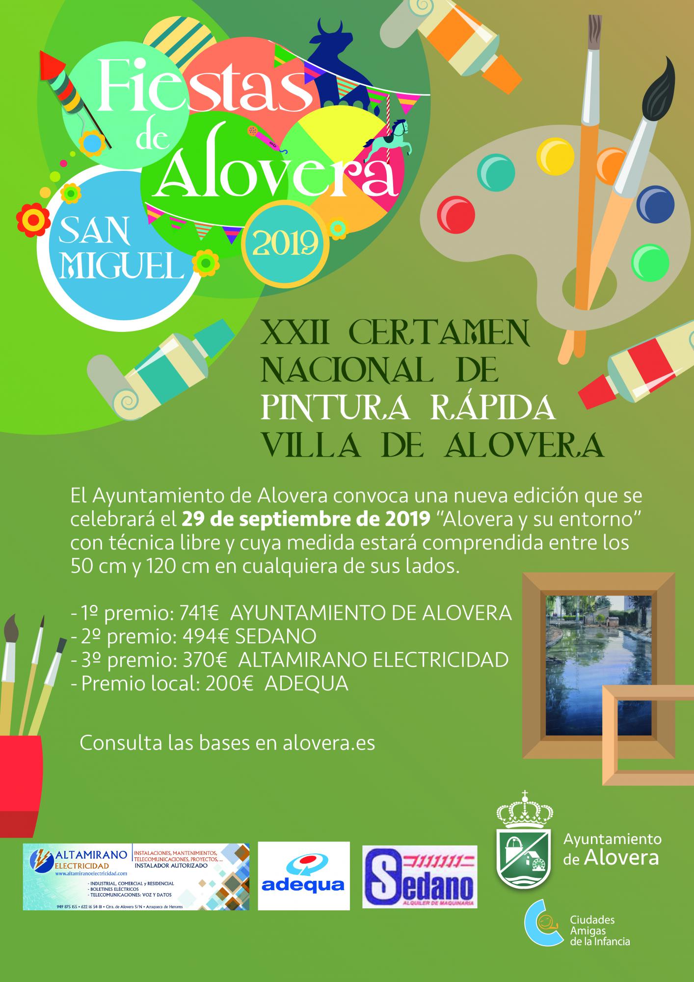El Ayuntamiento de Alovera ha convocado la XXII edición del Certamen Nacional de Pintura Rápida al aire libre ‘Villa de Alovera’, cita cultural que cada año congrega a un número mayor de participantes y de público interesado en contemplar las obras que los pintores realizan de los distintos rincones del municipio de Alovera a lo largo de toda una jornada de trabajo.