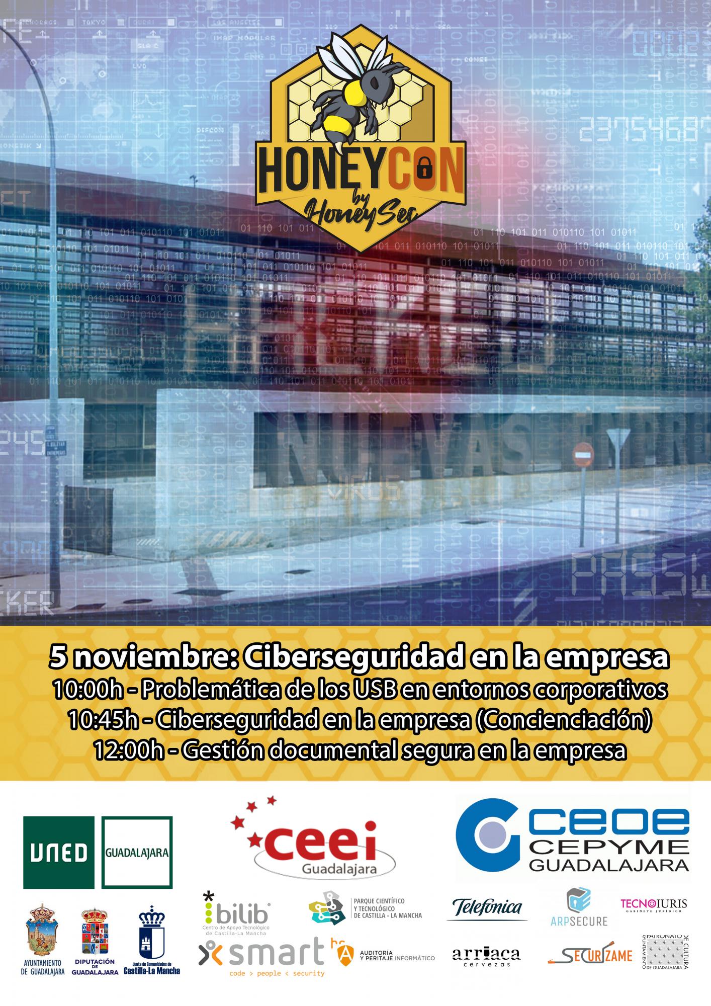 CEOE-CEPYME Guadalajara y el CEEI alcarreño colaboran el 5º congreso HoneyCon by HoneySec con la jornada de ciberseguridad en la empresa que se desarrollará el próximo martes 5 de noviembre y para su asistencia se puede reservar la plaza en https://www.eventbrite.es/e/entradas-jornada-ciberseguridad-en-la-empresa-5o-congreso-honeycon-75940246321