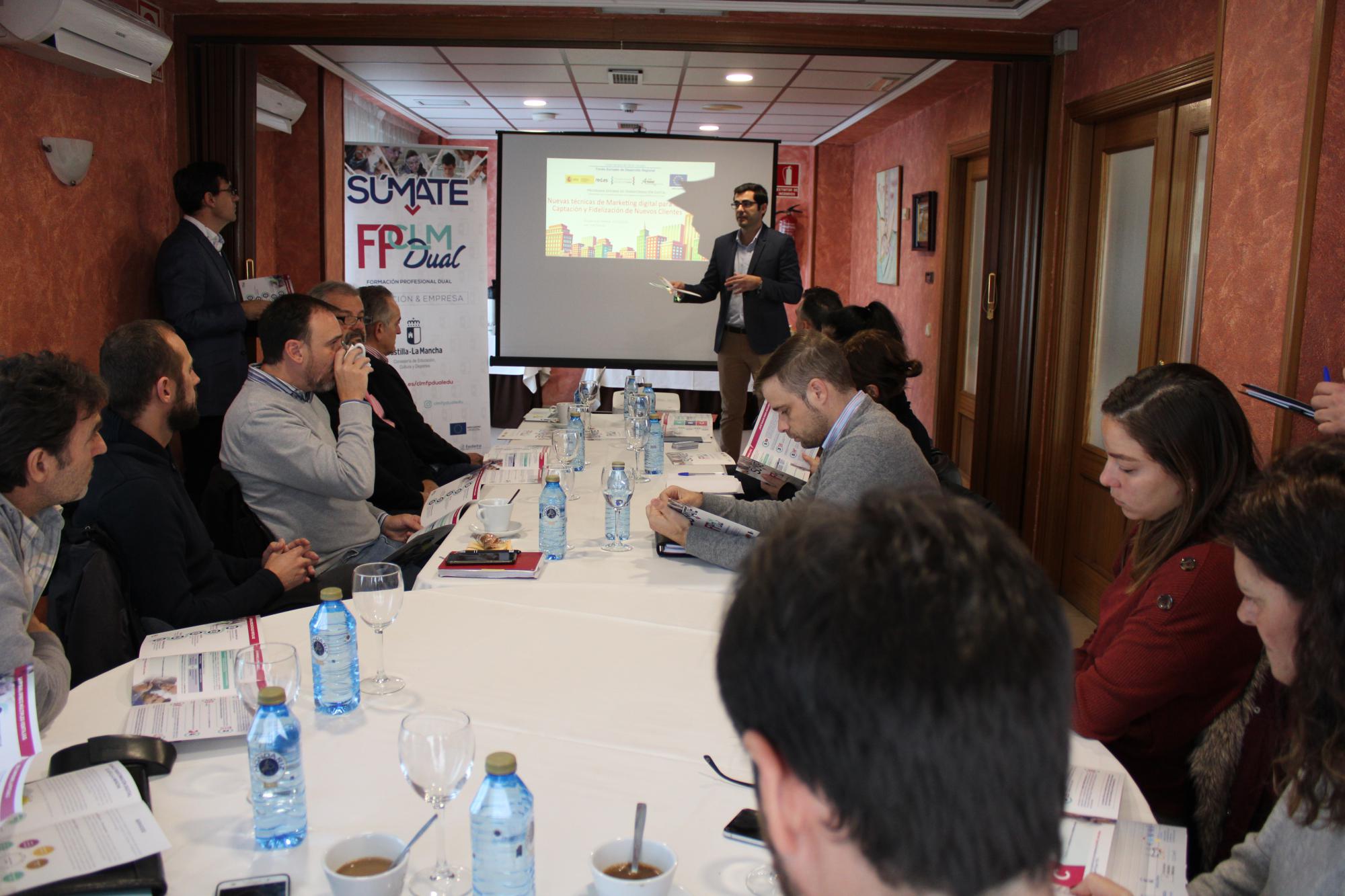 Tras esta píldora informativa, también se informó a los presentes del proyecto de “Impulso y promoción de la Formación Profesional Dual en el Sistema Educativo en CLM”, organizado por la Junta de Comunidades de Castilla-La Mancha, con la colaboración de CECAM CEOE-CEPYME CLM, y financiado por el ministerio de Educación y Formación Profesional y cofinanciado por el Fondo Social Europeo, ha explicado a los presentes las novedades de la FP Dual, donde se encuentran las modalidades en las que se pueden acoger a los alumnos en prácticas, las horas mínimas que se tienen que cumplir o la tutorización que hay que llevar a cabo con estos alumnos.