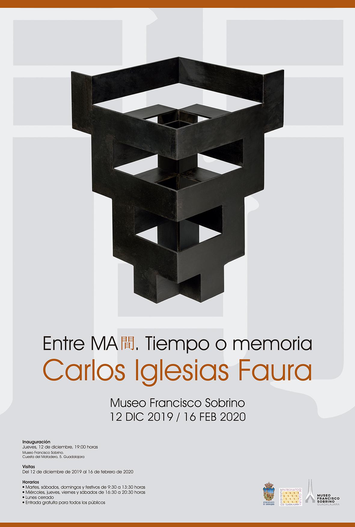 El próximo 12 de diciembre se inaugurará, a las 19.00 horas, la exposición Entre MA. Tiempo o Memoria, Esculturas de Carlos Iglesias Faura, en el Museo Sobrino de Guadalajara.