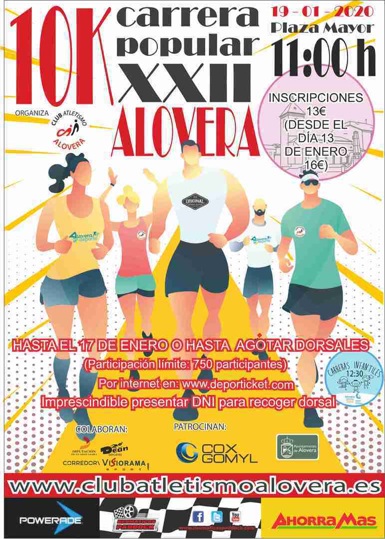 ¡Se acerca el gran día! El momento que muchos corredores están esperando para comenzar bien el año. El próximo domingo 19 de enero se celebrará la XXII Edición de la carrera popular de Alovera.