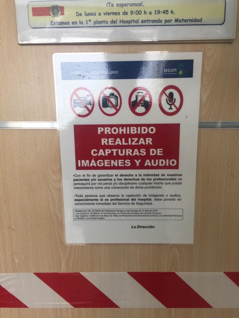 De esta forma, se ha referido a los carteles que han aparecido en algunos hospitales de la región en los que se dice literalmente “prohibido realizar capturas de imágenes y audio” y se amenaza con perseguir “por vía penal y/o disciplinaria cualquier hecho que pueda interpretarse como una vulneración de dicha prohibición”.