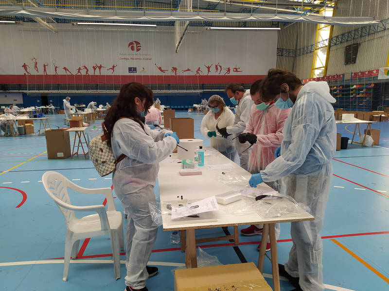 | Dispositivo para la preparación del reparto "puerta a puerta" de mascarillas compradas por el Ayuntamiento. Fotografía: Ayuntamiento de Azuqueca |