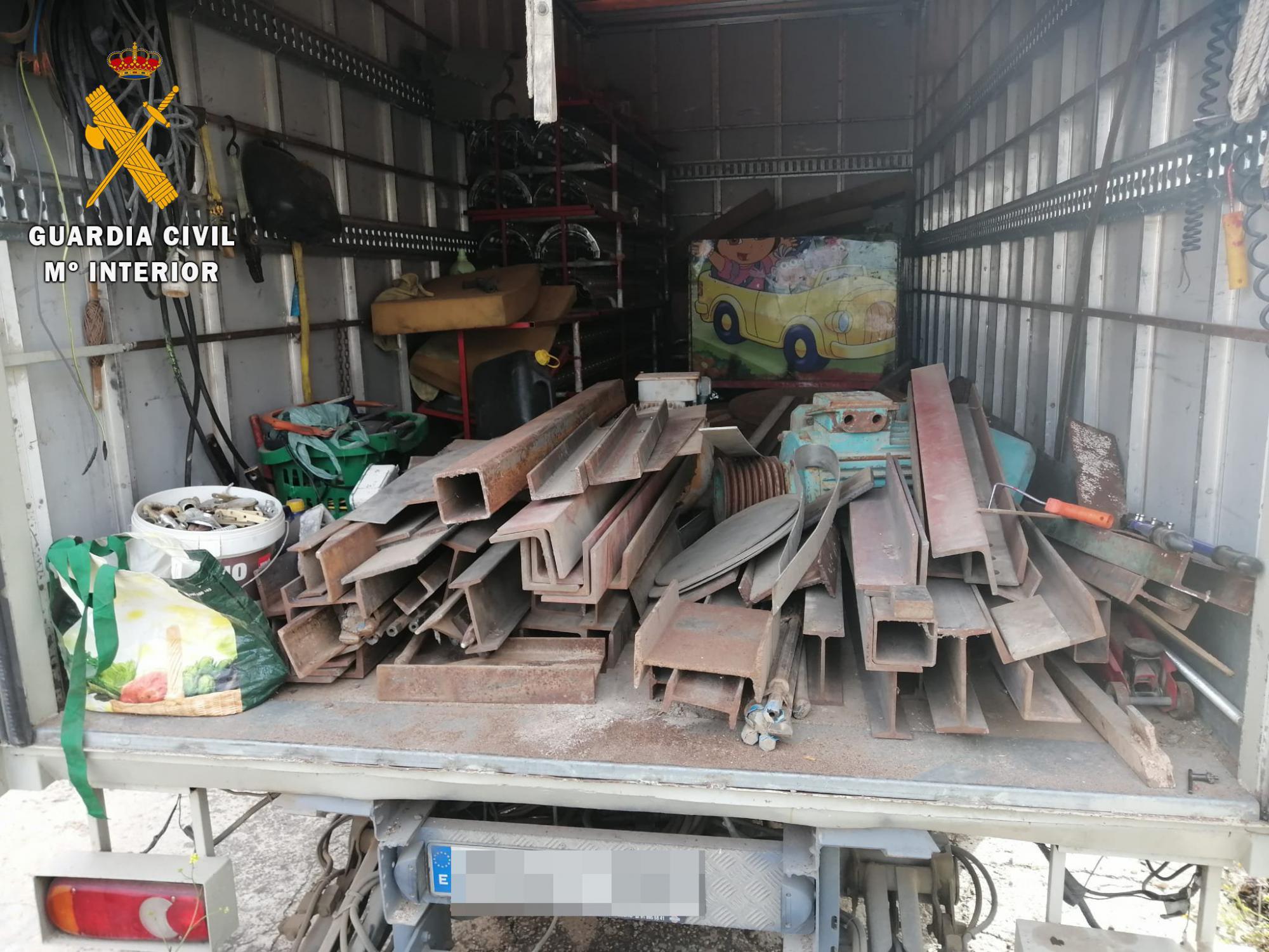 Los agentes interceptaron este vehículo e identificaron a su conductor, un hombre de 36 años con antecedentes delictivos. Seguidamente inspeccionaron la carga del camión y hallaron numerosas herramientas, material de construcción y vigas de hierro.